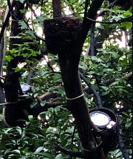大自然的美,專門用藤條編的鳥巢造型的燈罩。設(shè)計施工人員告訴記者,樹杈上掛著的“鳥巢”都是用藤條和干草編織而成,鳥巢里不是鳥,而是一盞盞景觀燈,且每只鳥巢的下方都拖著一條直徑約5厘米的“尾巴”,電纜就隱藏在里面。